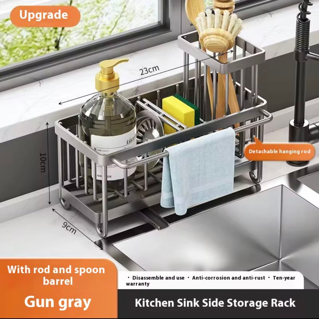 Optimisez l’espace autour de votre évier avec ce support de stockage multifonctions, conçu pour garder votre cuisine propre, organisée et fonctionnelle.